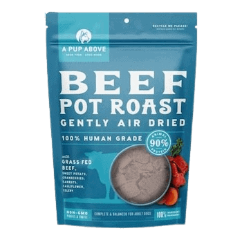 Why we recommended it:A Pup Above Gently Air Dried Dog Food offers features human-grade USDA beef, bone broth, and non-GMO vegetables—ingredients that help support muscle tone, hydration, and antioxidant defense, all key for dogs managing cortisol imbalance. We like that it’s tested for pathogens and made in a USDA-inspected facility, ensuring food safety. With no artificial preservatives, corn, or soy, it avoids ingredients that may contribute to inflammation. Its slow air-drying method keeps nutrients intact while producing a shelf-stable, crunchy texture dogs love. It’s also backed by a transparency promise, showing sourcing and cooking data through its “Bark Code” traceability system.